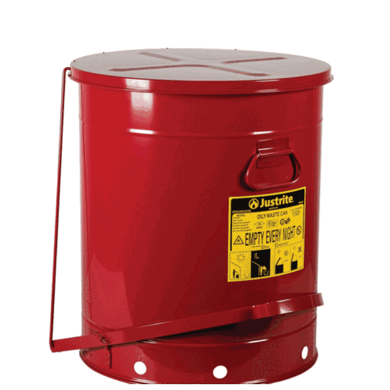 BOTE DE BASURA DE ACEITE JUSTRITE 09700, CIERRE AUTOMÁTICO, 21 GALONES, ROJO